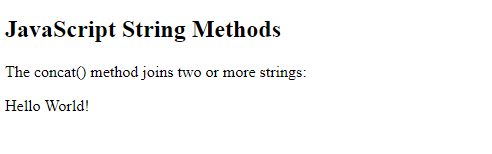 با استفاده از متد ()concat در زبان جاوا اسکریپت شما می توانید تعداد دو یا بیشتر از یک رشته را بهم متصل کنید: