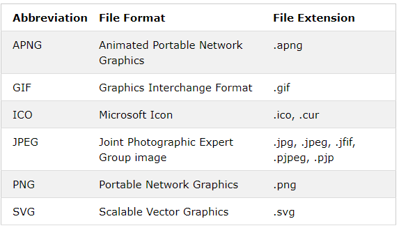 این لیستی از متعارف ترین فرمت های تصویر می باشد که در تمام مرورگرها پشتیبانی می شوند: